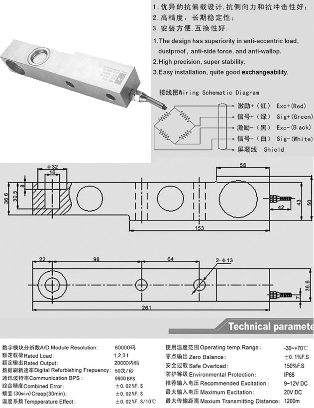 SB-D 1-3t(应用领域:汽车衡、平台秤、配料秤及各种专用衡器)